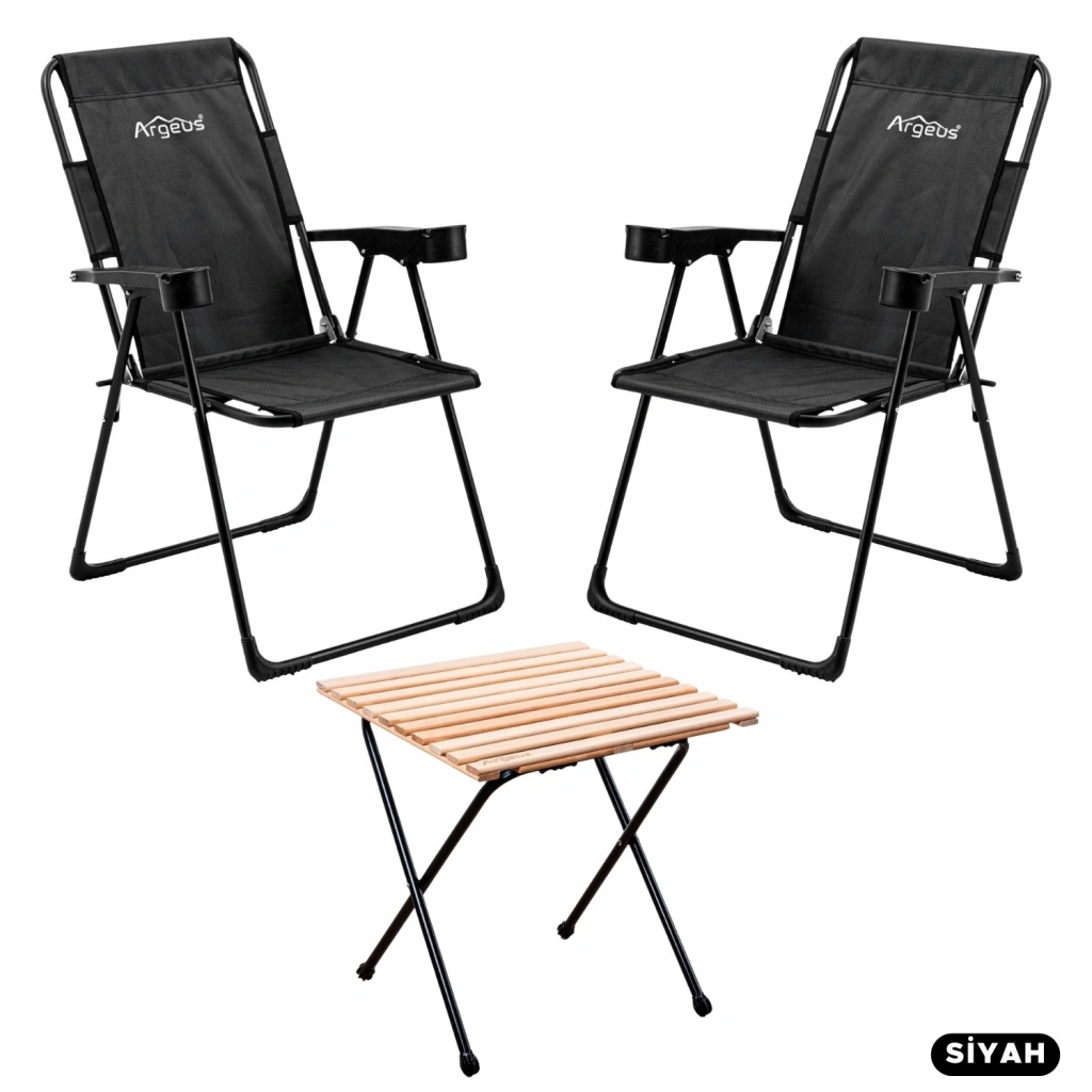 2 Adet Katlanır Kamp Sandalyesi ve Masa Seti - Rest - Siyah - 130 KG Taşıma