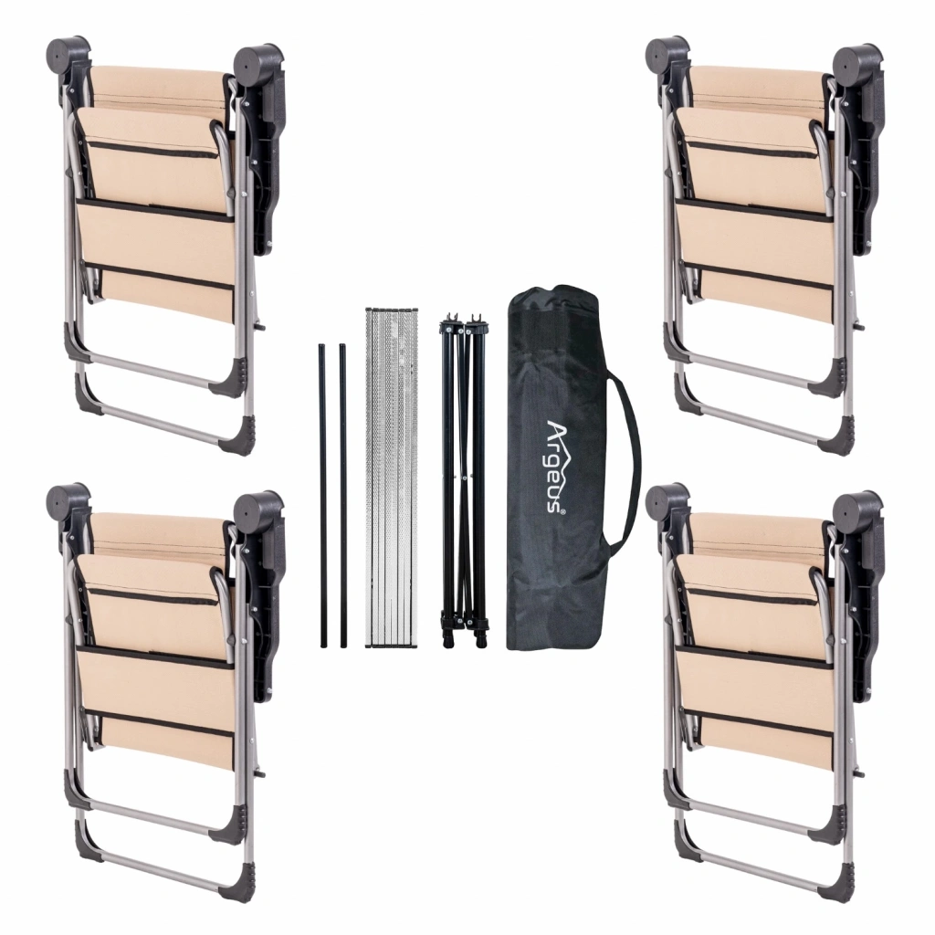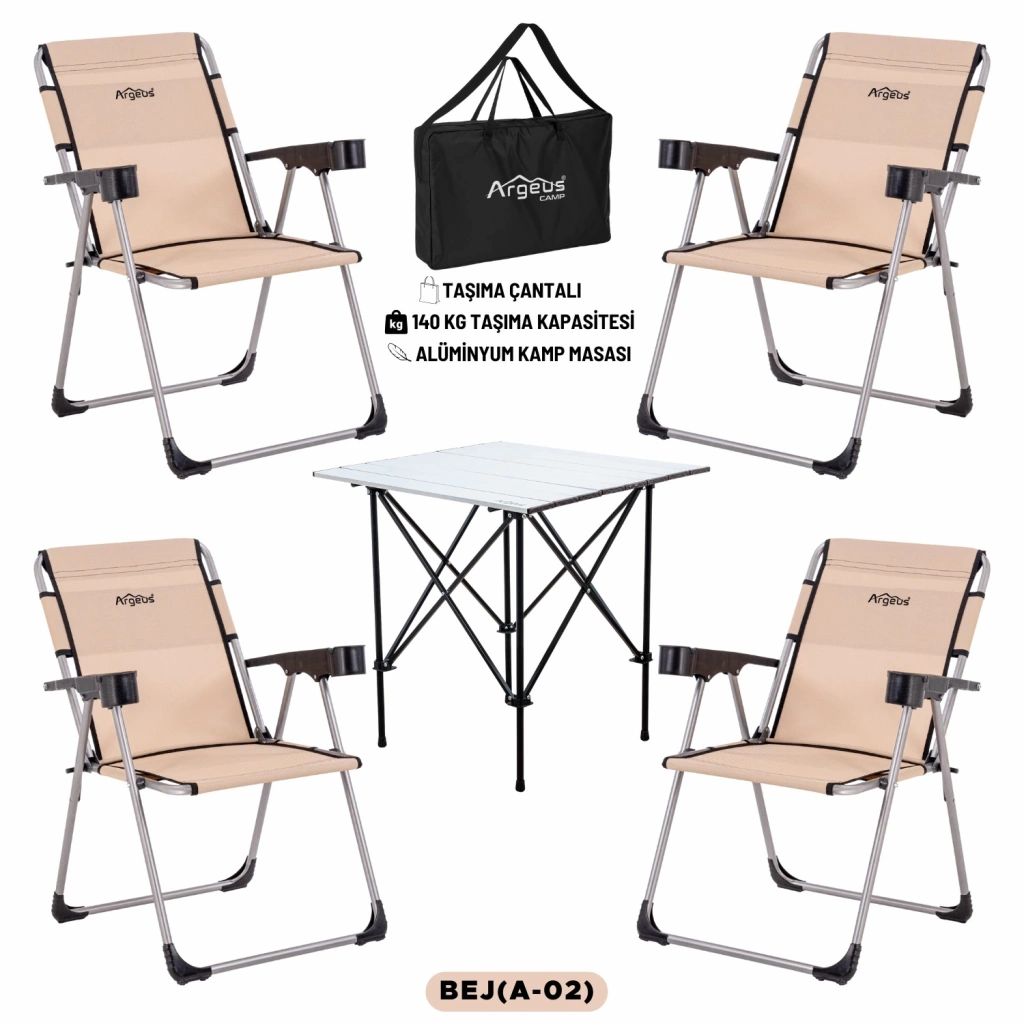 4 Adet Katlanır Kamp Sandalyesi ve Alüminyum Masa Seti - Rock Silver - Bej - Taşıma Çantalı