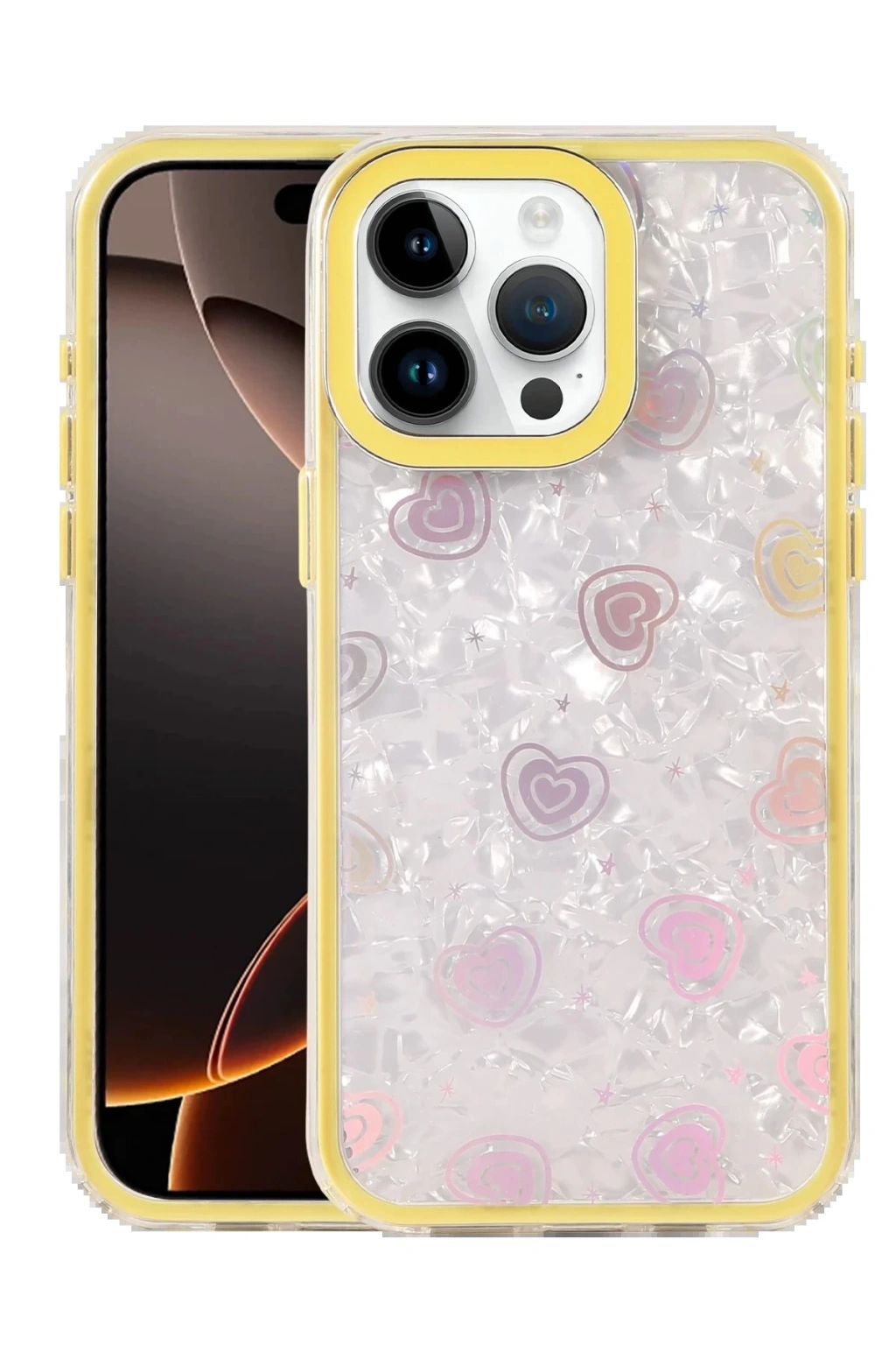 ✅ Kristal şeffaf tasarımı ve renkli kalp desenleriyle şık bir görünüm sunar.