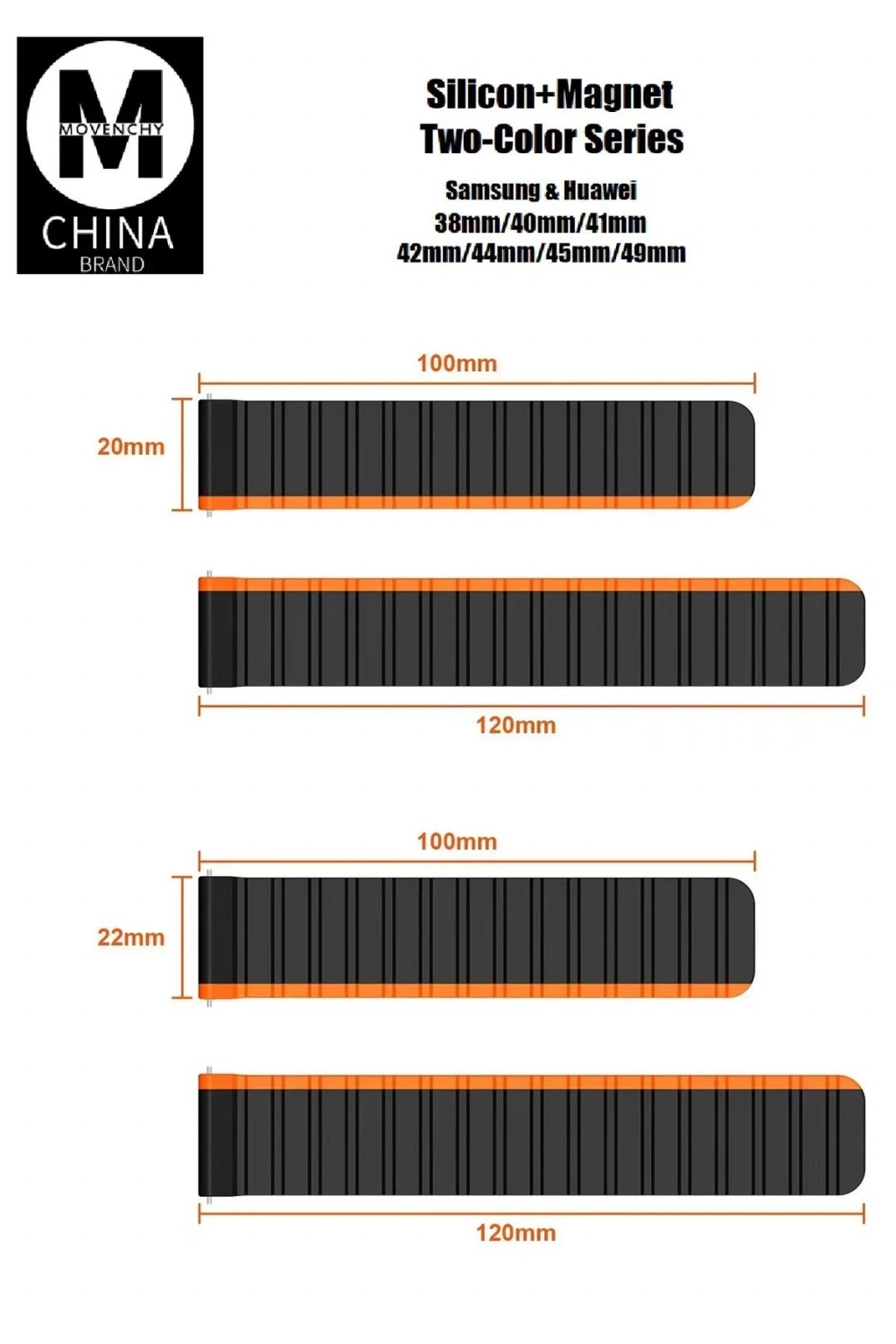 AVS02 Apple Watch 42mm MO-WB1 Çift Renk Mıknatıslı Silikon Kordon - Gri-Turuncu