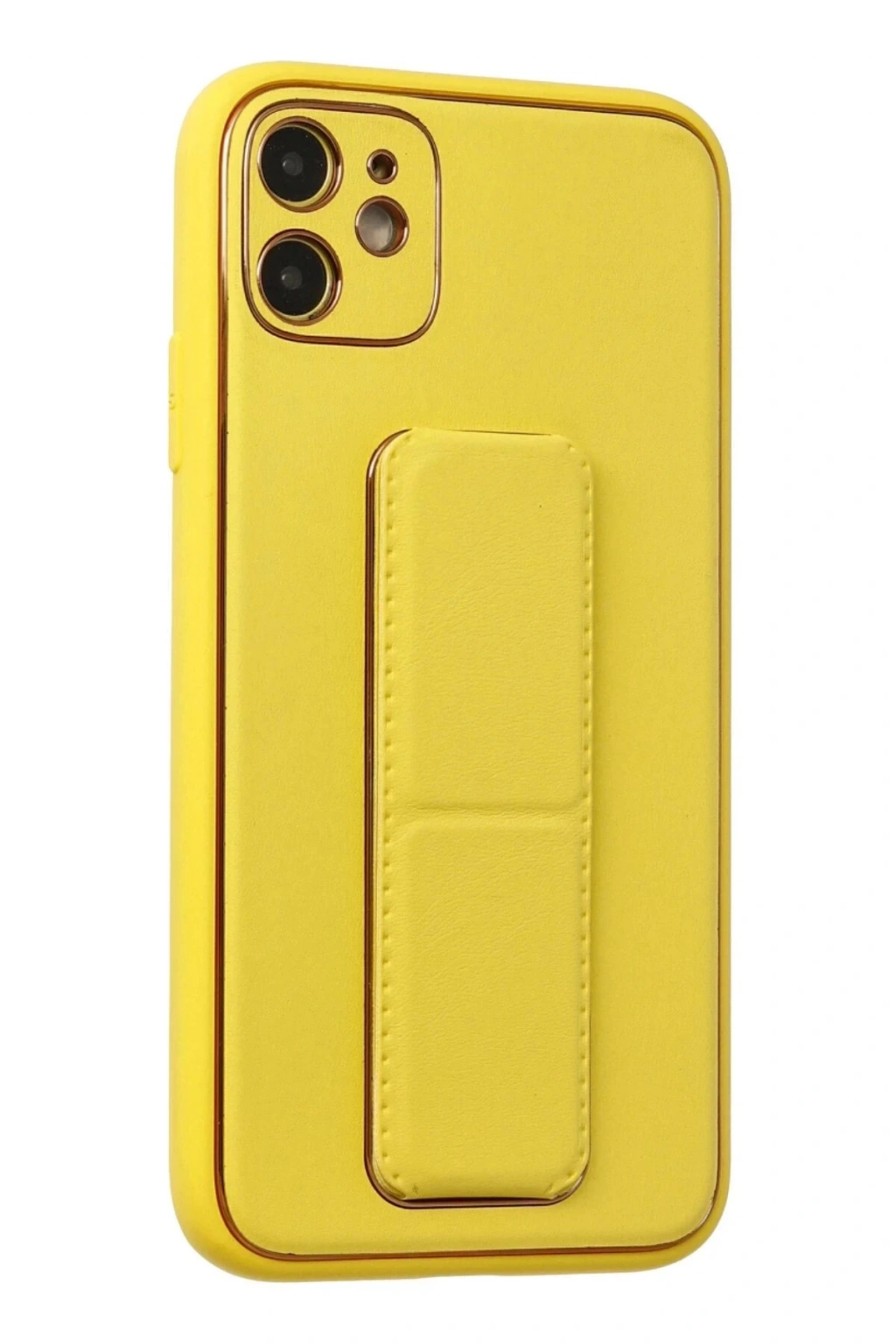 AVS02 iPhone 12 Kılıf Coco Deri Standlı Kapak - Sarı