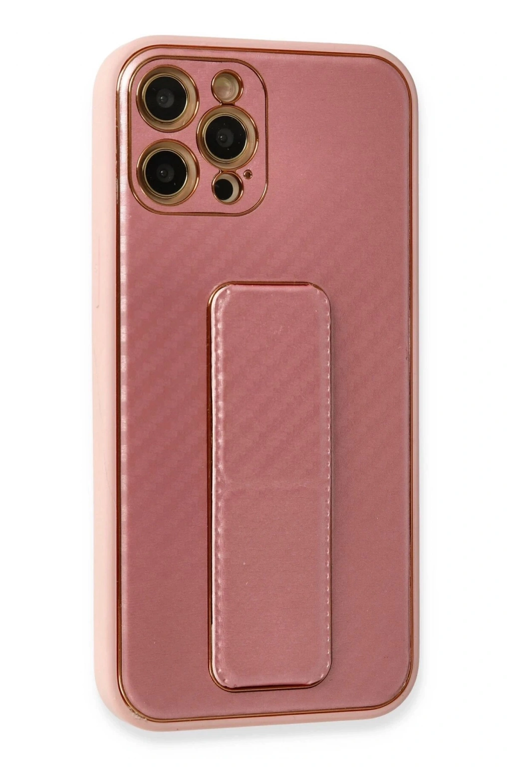 AVS02 iPhone 12 Pro Kılıf Coco Karbon Standlı Kapak - Pembe