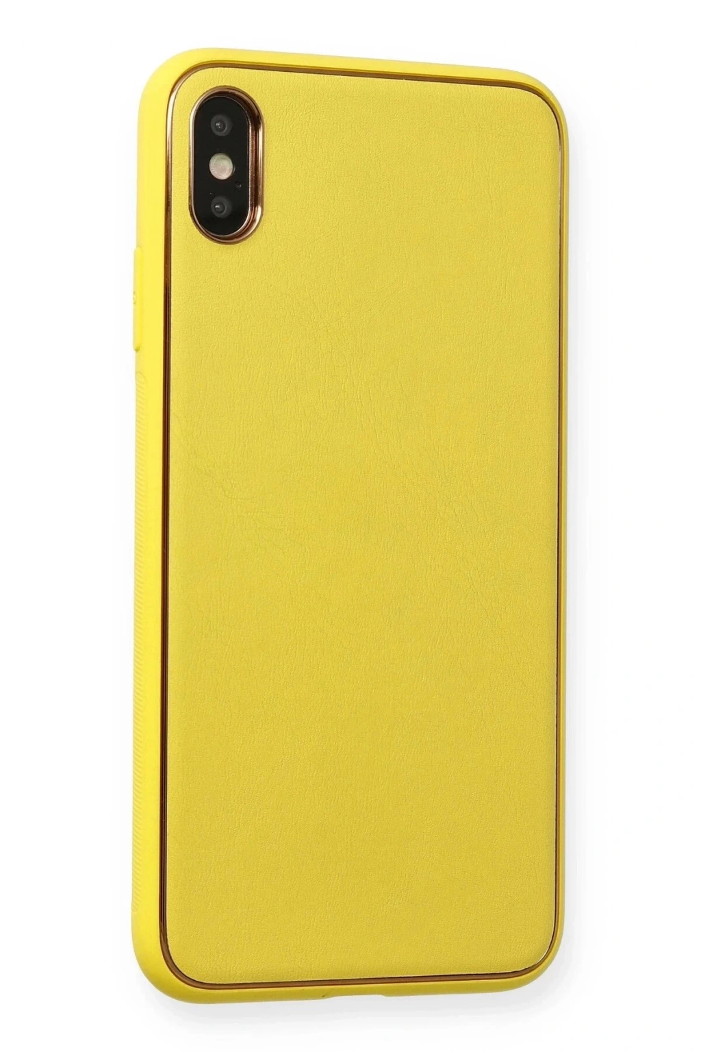 AVS02 iPhone XS Max Kılıf Coco Deri Silikon Kapak - Sarı