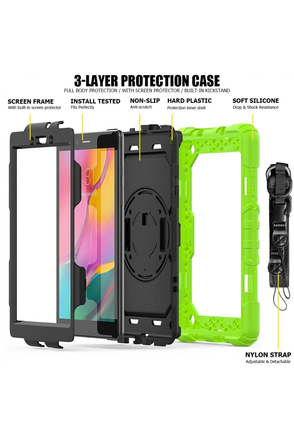 360 derece tabletinizi sarar bu sayede ekran koruyucu kullanmanıza gerek yoktur.