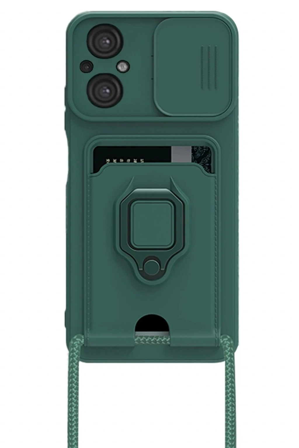 AVS02 Xiaomi Poco M5 Kılıf Zuma Kartvizitli Yüzüklü Silikon - Yeşil