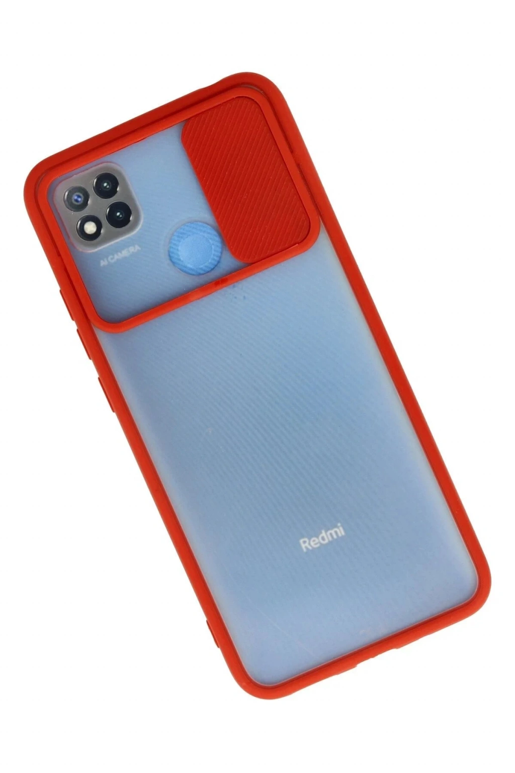 AVS02 Xiaomi Redmi 9C Kılıf Palm Buzlu Kamera Sürgülü Silikon - Kırmızı