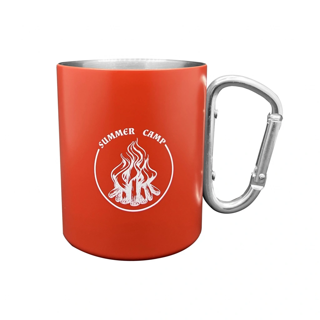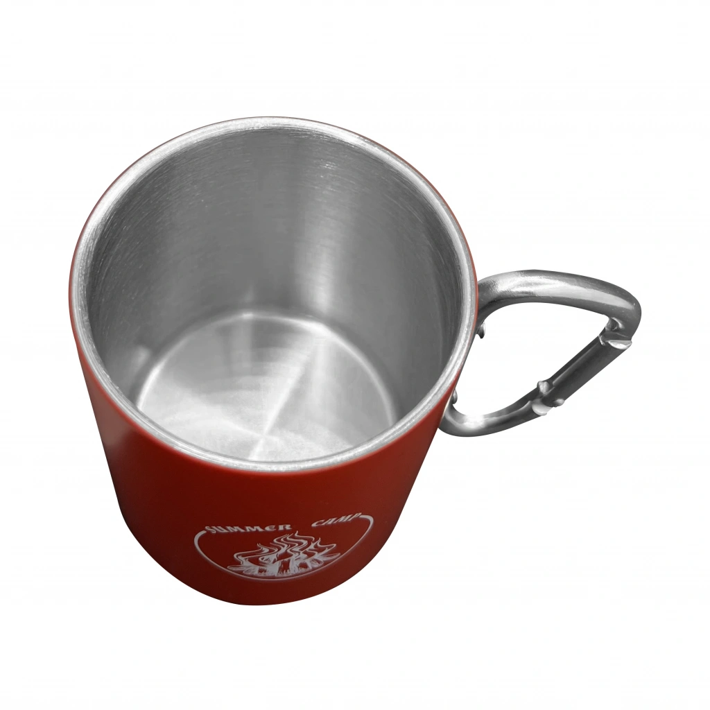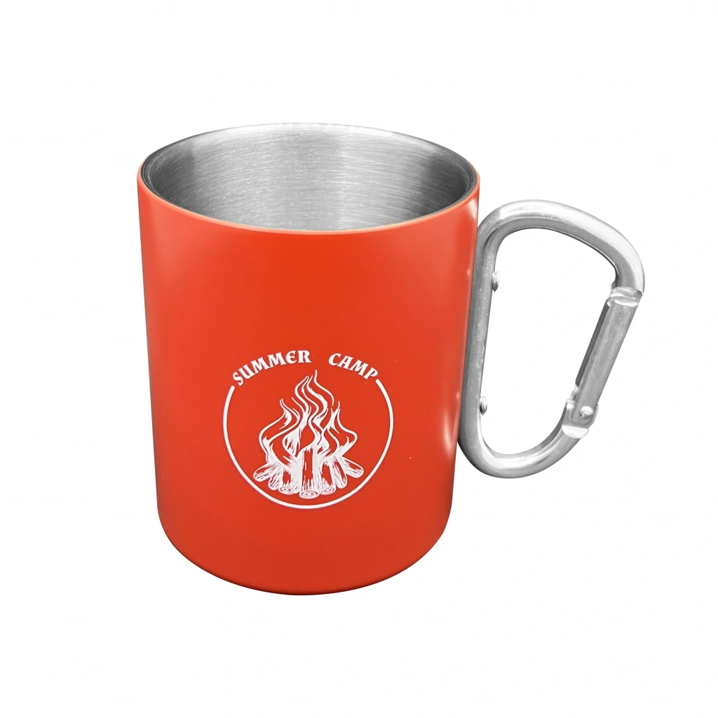 Karabina Saplı Paslanmaz Çelik Kupa Bardak - Orcamp - Kırmızı (OUT-1850)