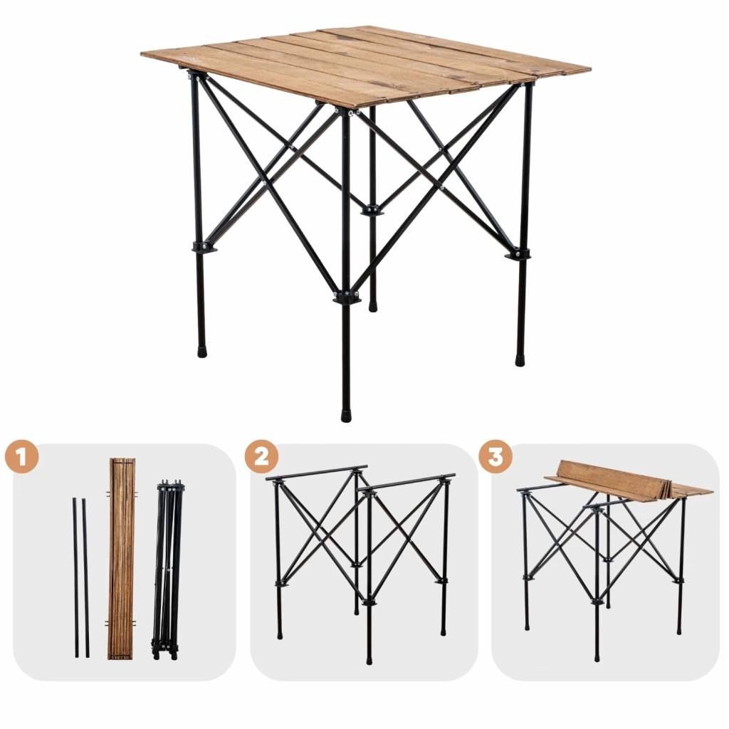 Katlanabilir Ahşap Kamp ve Piknik Masası - Demir Ayaklı (54021)