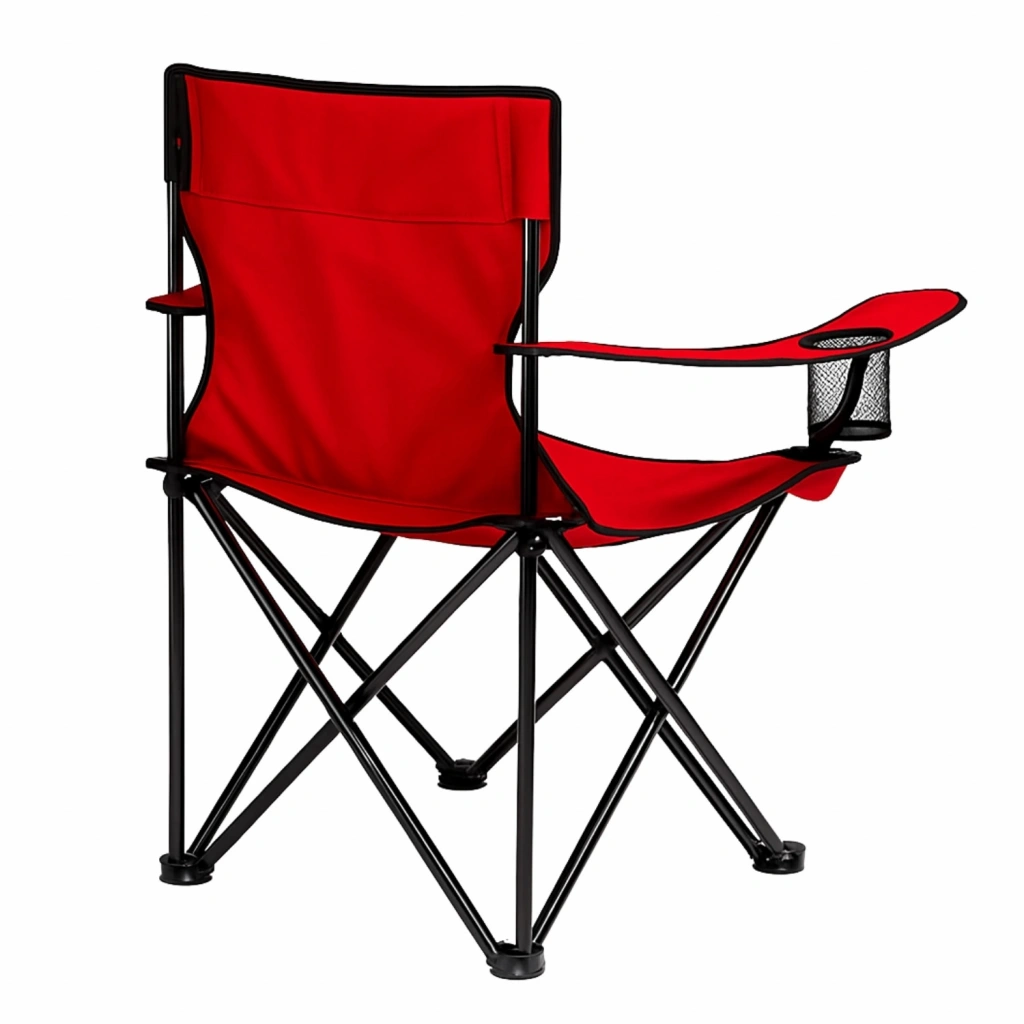 Katlanır Kamp Piknik Sandalyesi - Bardaklıklı - (DY.001) - Kırmızı - Taşıma Çantalı