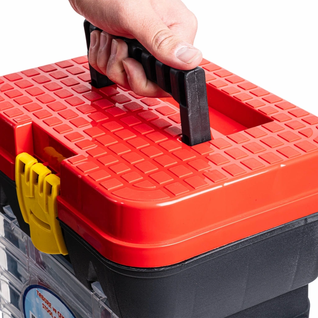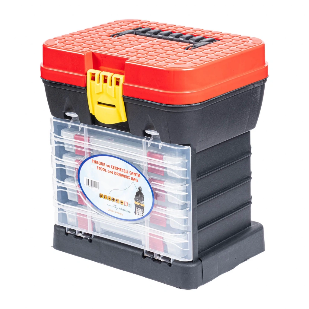 Tabureli Balıkçı Takım Çantası - 4 Çekmeceli - Kırmızı