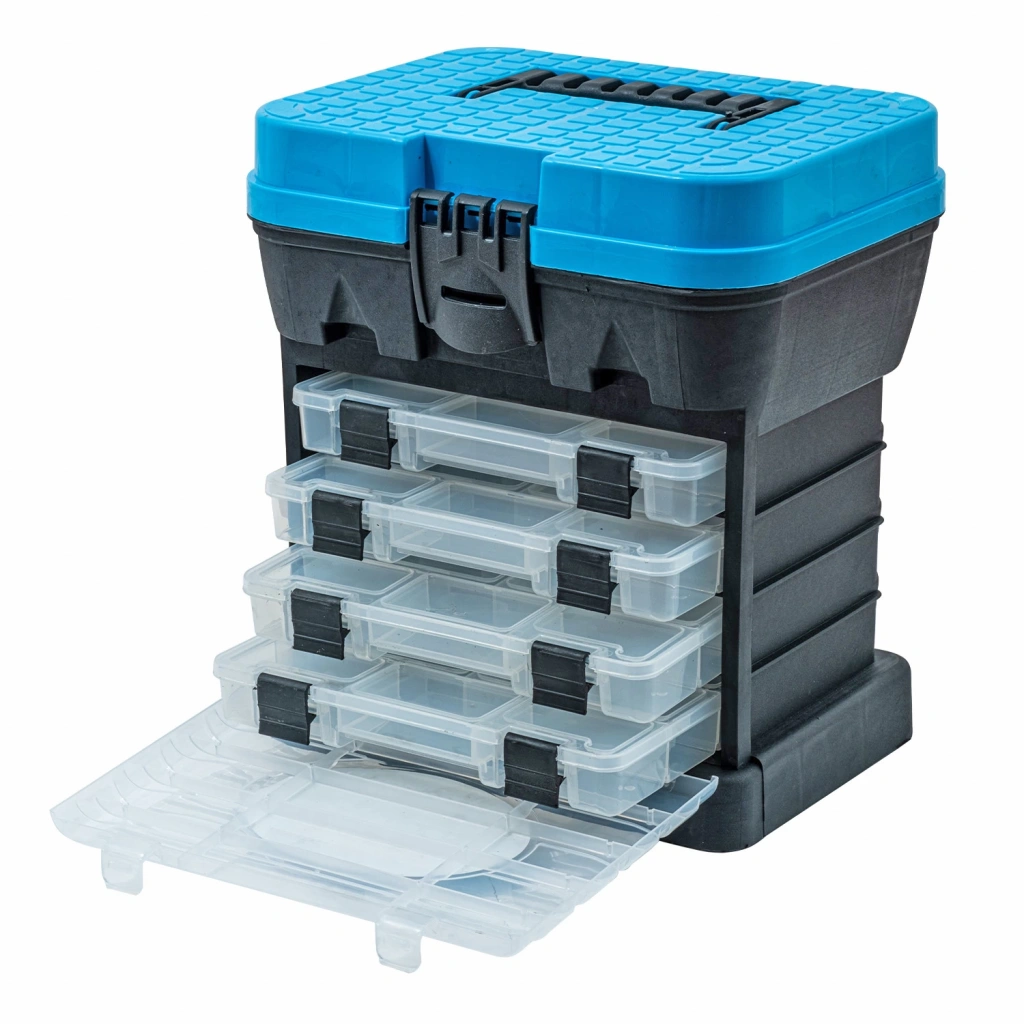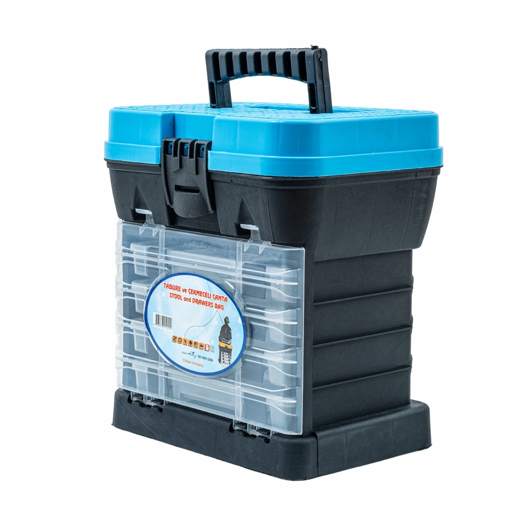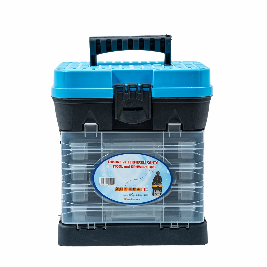 Tabureli Balıkçı Takım Çantası - 4 Çekmeceli - Mavi