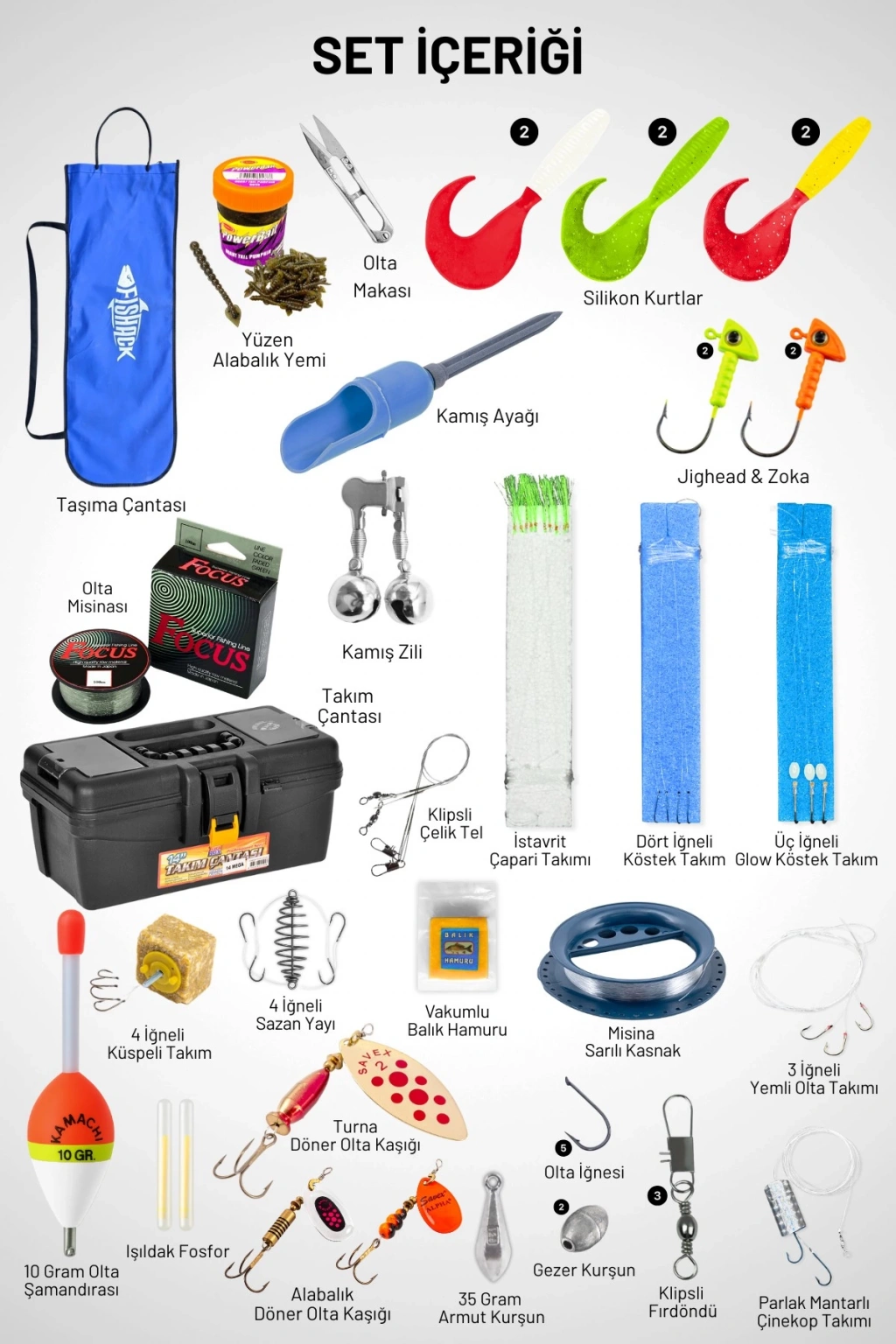 Fishack 42 Parça Elite Spin At-Çek Deniz ve Göl Olta Seti XXL - 2.40MT / 10-30GR